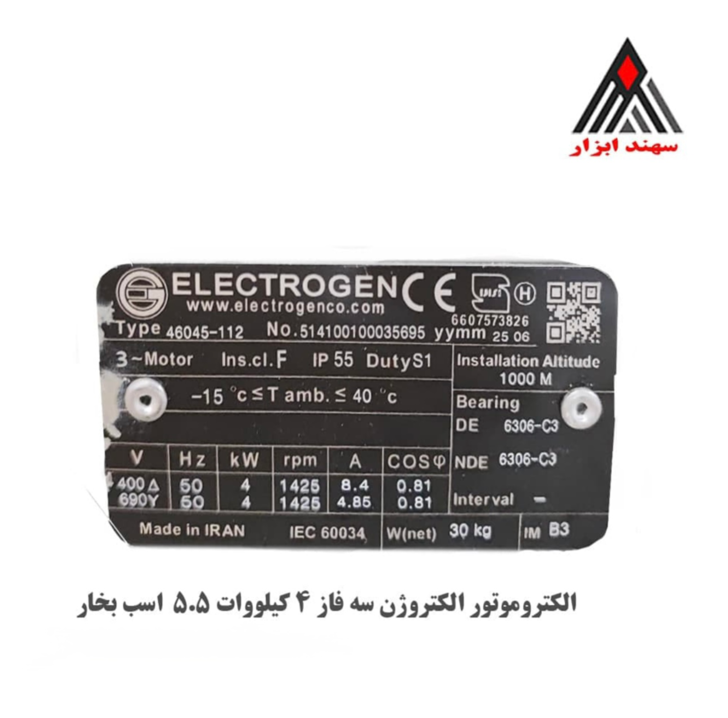 الکتروموتور سه فاز / الکتروژن 5.5اسب بخار / دینام 5.5 اسب 1400 دور / این یک موتور الکتریکی سه فاز است که برای عملکرد به سه فاز برق نیاز دارد.